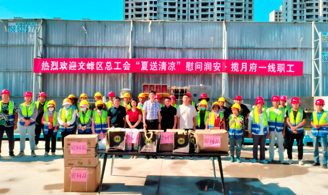 為做好防暑降溫工作,切實保障一線職工的健康安全。6月15日上午,安陽市文峰區(qū)總工會常務副主席連繼業(yè)、副主席閆妍一行深入集團公司潤安攬月府項目部開展“夏送清涼”走訪慰問。集團公司副董事長李志超、工會主席王福民、攬月府項目總經(jīng)理張帆等對工會領導的到來表示熱烈歡迎。